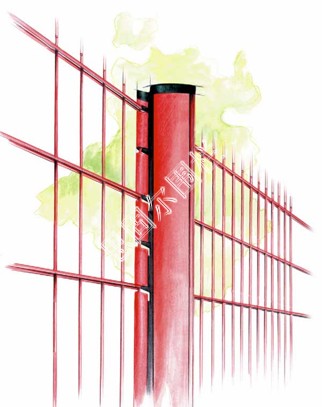 3.桃形立柱---立柱兩側(cè)有折彎的凹槽、便于卡住護(hù)欄網(wǎng)、使其美觀。適用于三角折彎護(hù)欄網(wǎng)、主要用于園林、小區(qū)防護(hù)等。